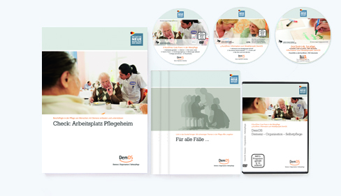 Medienmappe DemOSDen Alltag gestalten![]() Praktische Hilfestellungen für die Pflege von Menschen mit DemenzDiese Broschüre kann kostenfrei bestellt werden bei der Initiative Neue Qualität der Arbeit (INQA) Bestellmöglichkeit unter: Kurzfilme aus der ProjektarbeitDemOS: Demenz - Organisation - Selbstpflege:8 Kurzfilme: Gute Praxis in der Altenpflege Zukunft Demenz![]() Die Versorgung von Menschen mit Demenz wird in den kommenden Jahren zu einem der drängendsten Probleme. Mit einem Anteil von 60-70% demenziell veränderter PflegeheimbewohnerInnen ist die Pflege alter Menschen schon jetzt überwiegend Demenzpflege. Diese stellt zum einen eine hoch anspruchsvolle Aufgabe dar. Zum anderen unterscheidet sich die Pflege von Menschen mit Demenz markant von pflegerischen Tätigkeiten für andere Gruppen. Und nicht zuletzt rückt sie die Frage nach der "Pflege der Pflegenden" ins Zentrum der Aufmerksamkeit. |